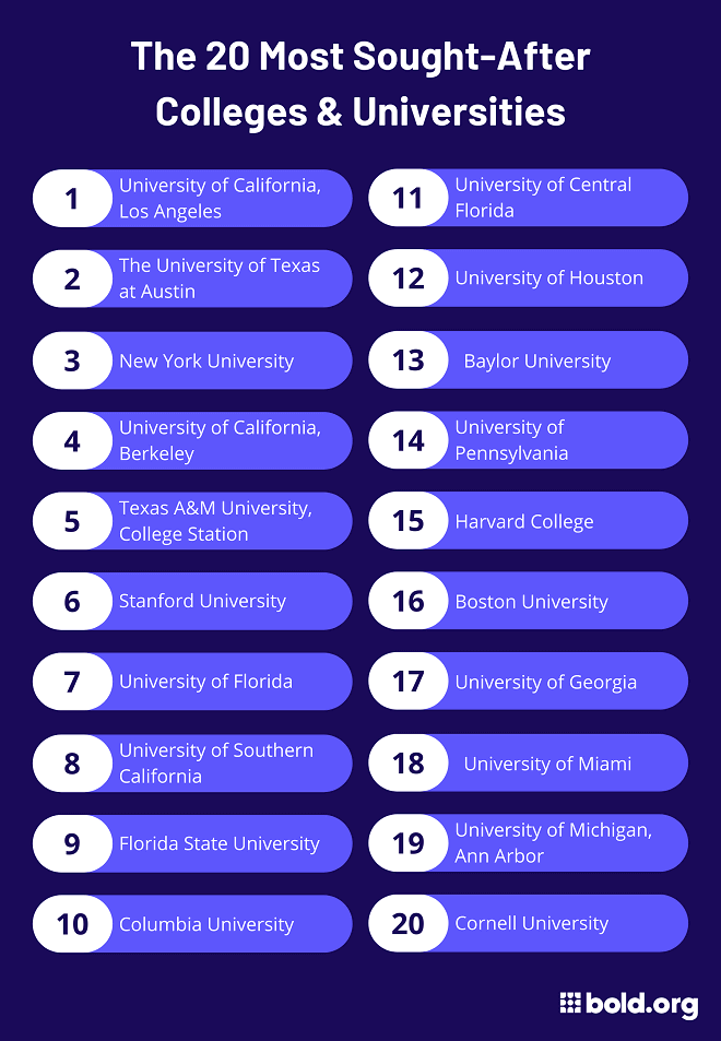 We looked at our database of more than 1.7 million student profiles and the schools students are interested in applying to in order to find which colleges and universities are the most sought-after in the United States.