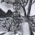 As for conveying lived experiences, I enjoyed making portraits of my family members as gifts for them or their family. I especially love capturing their happiest moments on my phone and then using those pictures as references for me to work off of in a traditional medium. My most recent piece was actually a portrait of my Titi Santa and Tio Dino. In English, she is my great aunt, and he was my great uncle. Titi Santa is 82 years old and has Alzheimer's. She doesn't remember saying her goodbyes to her husband who passed away at the beginning of this year, January 29th, and it's something that she feels distraught over daily. I thank God that I had a photo of the two during my Tio's 84th birthday party. I photoshopped it a bit and prepped it be a great reference picture. One important change I made was alter the number on the cake to 86, the age at which he passed. I created this portrait of the two to show my Titi that she did get to say her goodbyes and with it being done in an affectionate send-off. I framed it and gifted it her, and... it's something genuinely appreciated by her and the rest of my family.